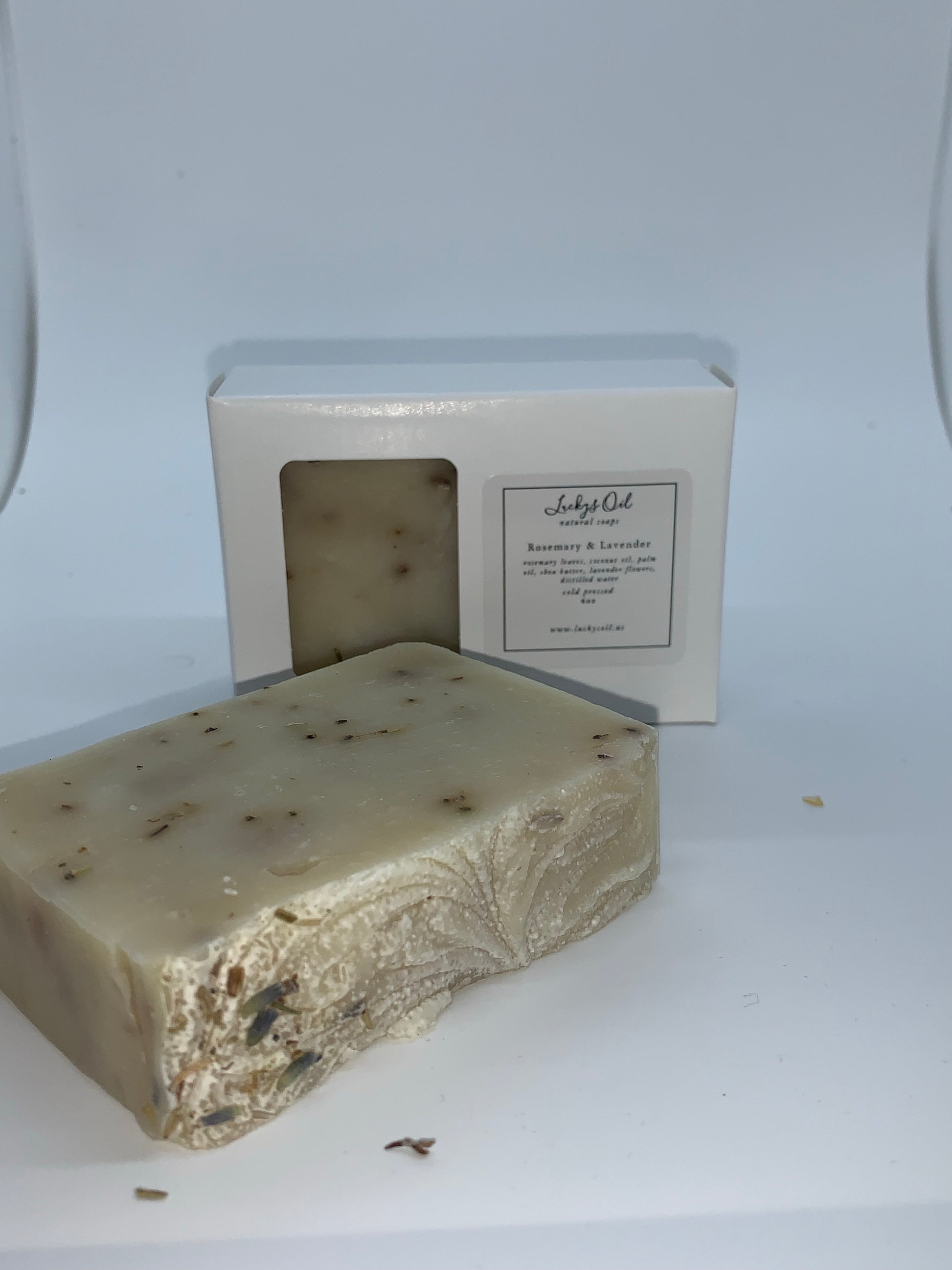 INGREDIENTS: Rosemary leaves, Coconut oil, Palm oil, Shea butter, Lavender flower, Distilled Water, Sodium Hydroxide